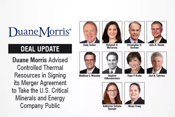 Duane Morris Advised Controlled Thermal Resources in Signing its Merger Agreement to Take the U.S. Critical Minerals and Energy Company Public