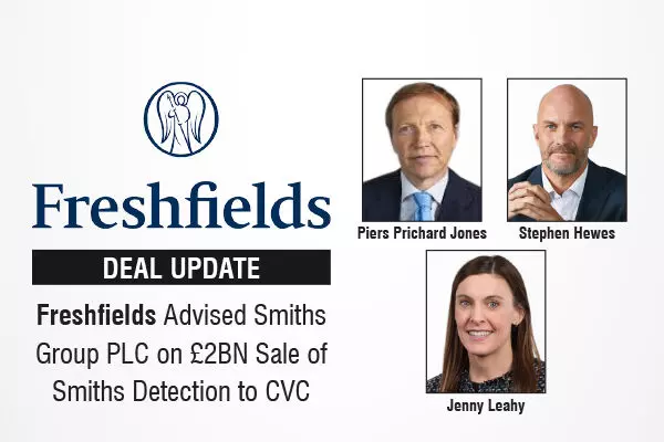Global law firm Freshfields is advised Smiths Group plc on the proposed sale of its Smiths Detection division to CVC Capital Partners at an enterprise value of £2bn. Smiths Group plc is a FTSE100 global engineering business focused on creating sustainable solutions across sectors including energy, security and industrial technology. The transaction marks a significant milestone for Smiths as it continues to focus on its core, high-performance industrial business. Completion is anticipated in the second half of 2026, subject to consultation processes and regulatory clearances.