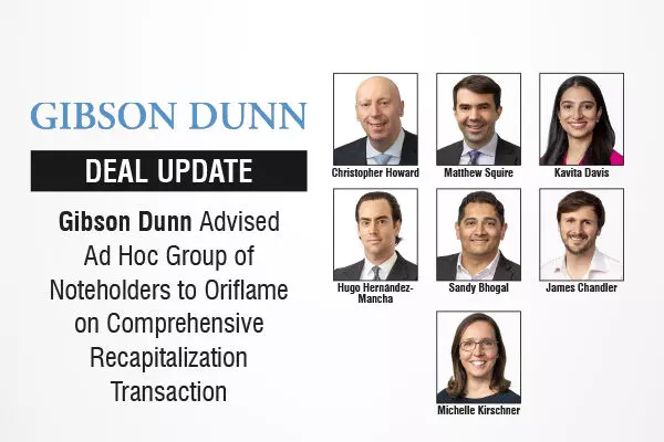 Gibson Dunn advised an ad hoc group of noteholders to Oriflame on its comprehensive recapitalization transaction. The fully consensual transaction involved a strategic approximately €520 million balance sheet deleveraging and significant injection of new capital, together with meaningful maturity extensions.