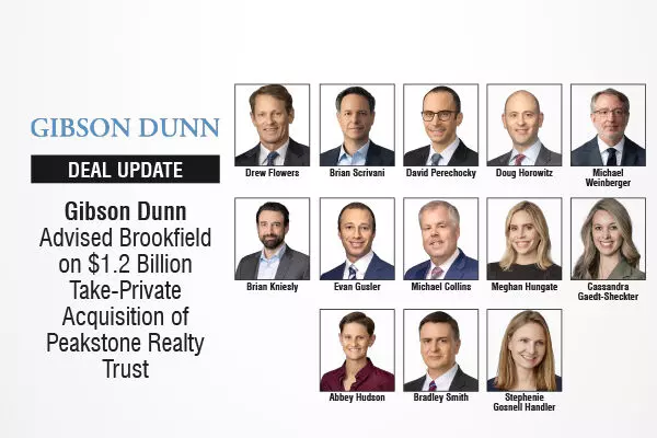 Gibson Dunn Advised Brookfield on $1.2 Billion Take-Private Acquisition of Peakstone Realty Trust