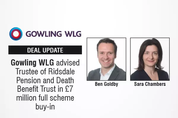 Gowling WLG team has advised the Trustee of Ridsdale Pension and Death Benefit Trust (Ridsdale) in a £7 million full scheme buy-in from Just Group (Just), securing the benefits of 30 members, consisting of 22 pensioners and eight deferred members.