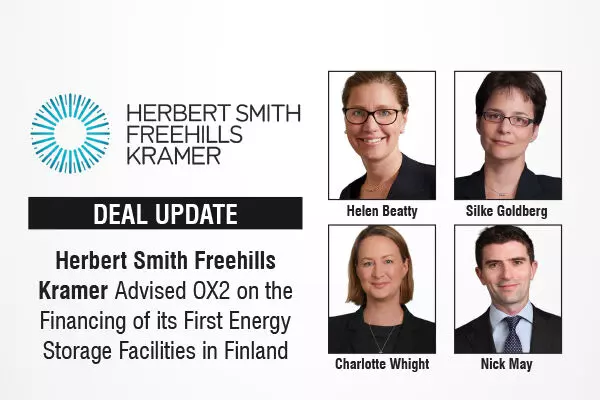 Herbert Smith Freehills Kramer Advised OX2 on the Financing of its First Energy Storage Facilities in Finland