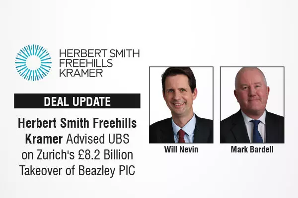 Leading global law firm Herbert Smith Freehills Kramer has advised UBS, as a financial advised to Zurich, on its recommended £8.2 billion all-cash offer for the entire issued share capital of Beazley plc.
