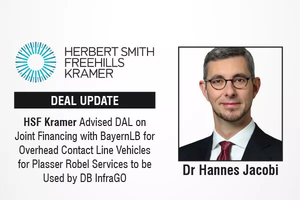 Herbert Smith Freehills Kramer has advised DAL Deutsche Anlagen-Leasing (DAL) as co-arranger and structurer alongside BayernLB on the financing of 13 CatenaryCrafter 15.4 E3 overhead contact line maintenance vehicles for Plasser Robel Services GmbH.