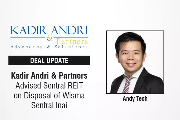 The premier Malaysian law firm, Kadir Andri & Partners is pleased to have acted as legal counsel for Sentral REIT in the successful disposal of Wisma Sentral Inai for a substantial cash consideration of RM135 million.