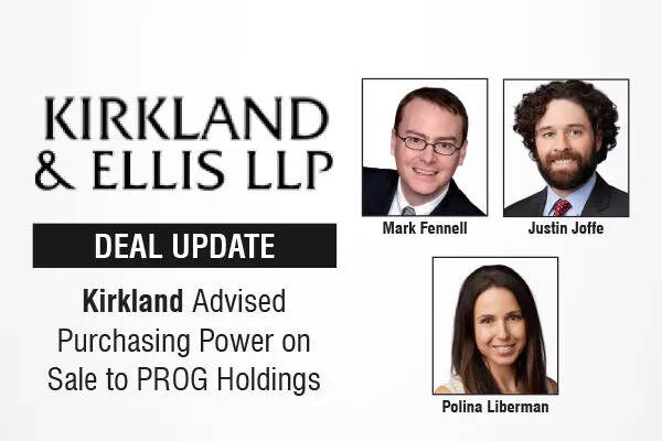 Kirkland & Ellis is advised Purchasing Power, a leading provider of voluntary employee benefit programs, on its sale to PROG Holdings, Inc., the fintech parent company of Progressive Leasing, Four Technologies and Build. The transaction was announced on December 1, 2025.