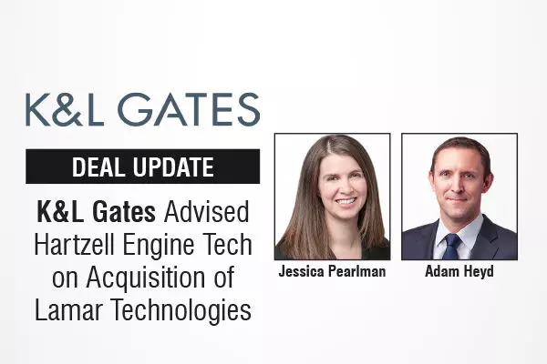 Global law firm K&L Gates advised Hartzell Engine Tech, a Signia Aerospace Company, in an asset acquisition of Lamar Technologies, a Washington-based manufacturer of battery chargers and other electrical components for commercial and military aviation sectors.