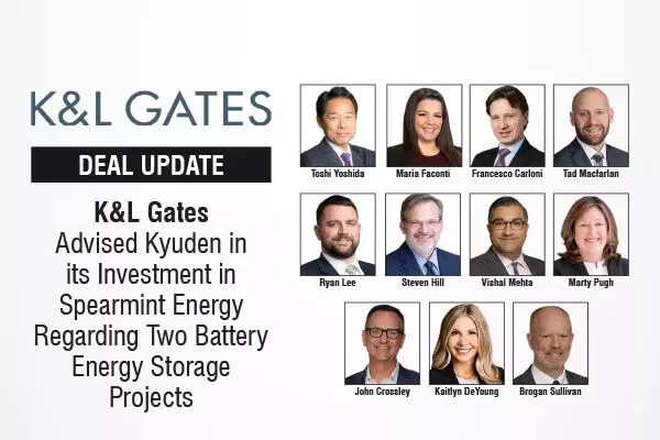 K&L Gates Advised Kyuden In Its Investment In Spearmint Energy Regarding Two Battery Energy Storage Projects