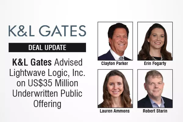 K&L Gates Advised Lightwave Logic, Inc. on US$35 Million Underwritten Public Offering