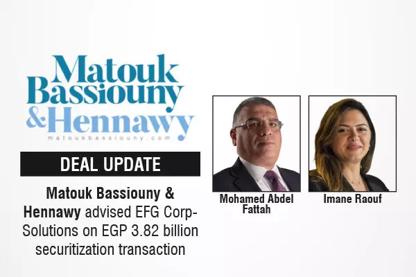 The leading full-service MENA (Middle East and North Africa) law firm, Matouk Bassiouny & Hennawy (“MBH”) has acted as legal counsel to EFG Corp-Solutions on a securitization transaction valued at EGP 3,820,000,000. The securitized portfolio comprised financial leasing contracts originated by EFG Corp-Solutions, supporting the company’s ongoing efforts to enhance liquidity and strengthen its financial position in the Egyptian market.