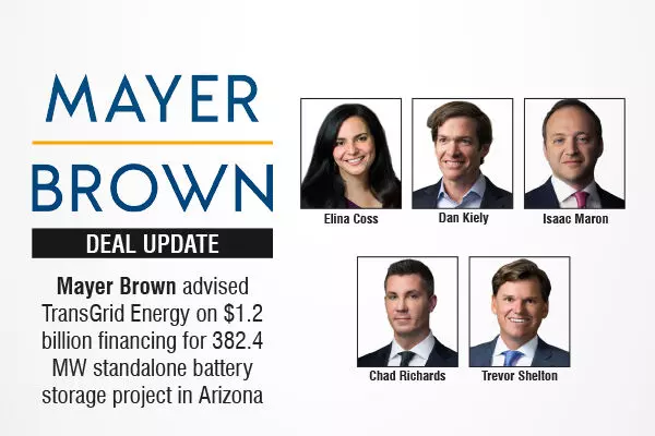 Mayer Brown advised TransGrid Energy on $1.2 billion financing for 382.4 MW standalone battery storage project in Arizona