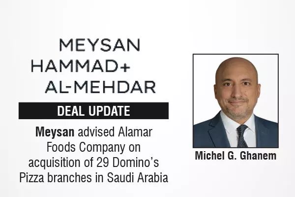 The international law firm, Meysan acted as legal counsel to Alamar Foods Company in connection with its acquisition of 29 Domino's Pizza branches in Makkah and Taif, Kingdom of Saudi Arabia.