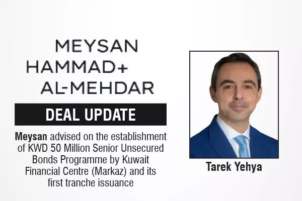 The international law firm, Meysan advised Kuwait Financial Centre (Markaz) on the successful establishment of its KWD 50 million Senior Unsecured Bonds Programme and the issuance of the First Tranche of Bonds, valued at KWD 35 million. The First Tranche was issued to qualified investors through private placement and comprised KWD 17.5 million Fixed Rate Bonds and KWD 17.5 million Floating Rate Bonds with a five-year tenor. The proceeds will be used for general corporate purposes, including repayment of borrowings.