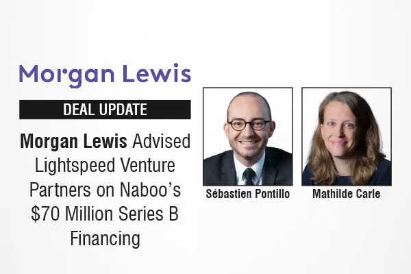 Morgan Lewis advised Lightspeed Venture Partners on its lead investment in Naboo’s $70 million Series B fund raise. The funding will accelerate the build-out of an AI-powered event procurement platform.