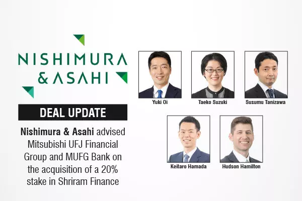 The international law firm in Japan, Nishimura & Asahi advised Mitsubishi UFJ Financial Group, Inc. [TSE: 8306, NYSE: MUFG] and MUFG Bank, Ltd., on the execution of an investment agreement with Shriram Finance Limited and its major shareholders, Shriram Ownership Trust and Shriram Capital Private Limited, for the acquisition of a 20% equity stake in Shriram Finance through a preferential allotment.