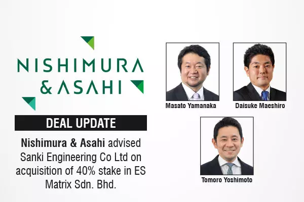 The leading international law firm in Japan, Nishimura & Asahi advised Sanki Engineering Co Ltd on its acquisition of 40% of the shares of ES Matrix Sdn. Bhd. The transaction marks a strategic investment by Sanki Engineering aimed at strengthening its presence and collaboration in the regional engineering and infrastructure sector.