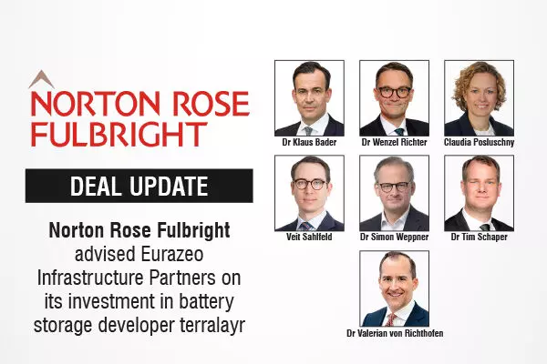 Global law firm Norton Rose Fulbright has advised Eurazeo Infrastructure Partners (EIP) on an investment in battery storage developer terralayr AG. Together with the existing investors, EIP will provide growth capital to terralayr of up to EUR 192 million to enable the further expansion of its portfolio of battery storage systems across the DACH region.