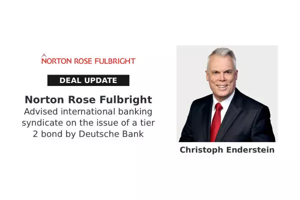 Global law firm Norton Rose Fulbright has advised a syndicate of international banks comprising Deutsche Bank Aktiengesellschaft, Barclays Bank Ireland PLC, Commerzbank Aktiengesellschaft, Erste Group Bank AG, Landesbank Baden-Württemberg, NatWest Markets N. V., Norddeutsche Landesbank - Girozentrale -, Standard Chartered Bank AG and UBS AG London Branch on the successful issue of a tier 2 subordinated bond (ISIN: DE000A46Z858) by Deutsche Bank Aktiengesellschaft with a volume of Euro 1 billion.