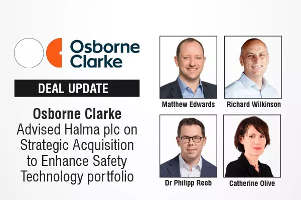 International legal practice Osborne Clarke has advised Halma plc on its £230m acquisition of UK-based E2S, a strategic addition that broadens Halma's portfolio of life-saving technologies within its Safety Sector.
