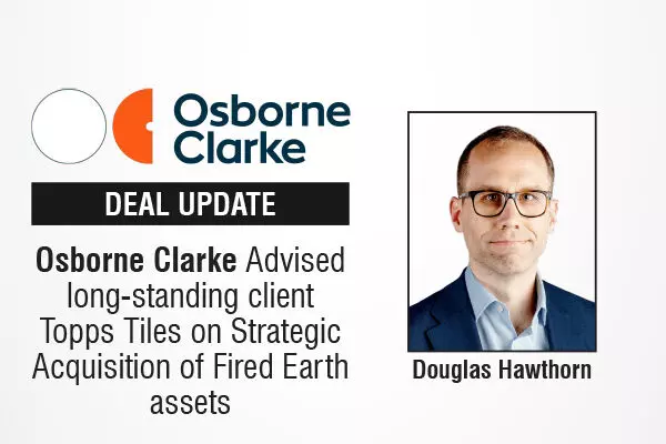 “Fired Earth is a distinctive and highly regarded brand within the interiors sector. We are pleased to have supported Topps Tiles on this strategic transaction, which positions the brand for its next phase of growth within a strong, design-led tile and interiors group." stated Dougals Hawthorn, Partner, Osborne Clarke.