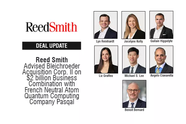 Global law firm Reed Smith advised Bleichroeder Acquisition Corp. II, a SPAC, on its business combination with Pasqal Holding SAS, a neutral atom quantum computing company headquartered in France. The transaction values Pasqal at a pre-money equity value of $2 billion and includes $200 million in committed convertible financing. The combined company will operate as Pasqal and is expected to list on Nasdaq.