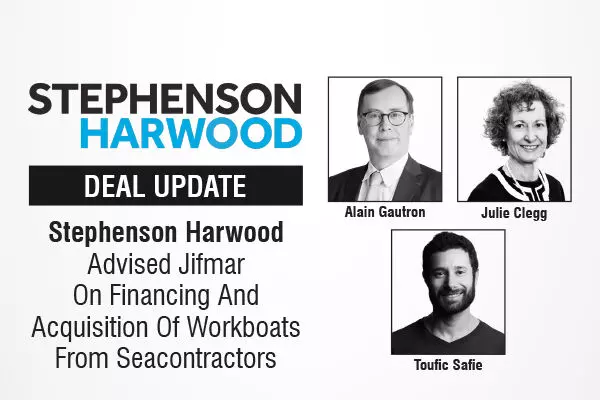 Law firm Stephenson Harwood LLP has advised Jifmar on the acquisition of 15 workboats and their crews from Dutch company Seacontractors, and the refinancing of the group’s corporate indebtedness.
