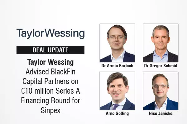 Taylor Wessing has advised BlackFin Capital Partners on leading a Series A financing round for Munich-based RegTech company Sinpex GmbH. The total volume of the financing round amounts to €10 million. In addition to BlackFin, existing investors ACE Ventures and TX Ventures participated in the round.