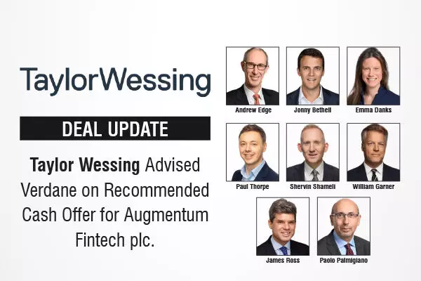 Taylor Wessing Advised Verdane on Recommended Cash Offer for Augmentum Fintech plc.