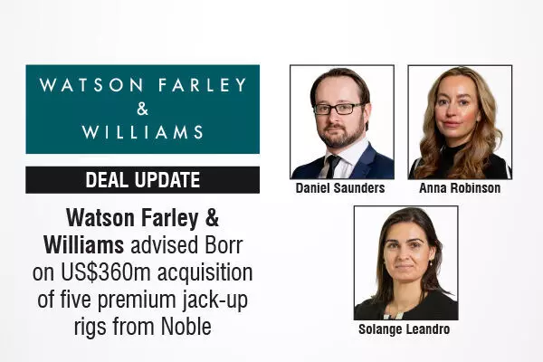Watson Farley & Williams advised Borr on US$360m acquisition of five premium jack-up rigs from Noble