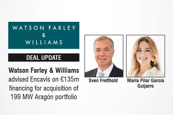Watson Farley & Williams advised Encavis on €135m financing for acquisition of 199 MW Aragón portfolio
