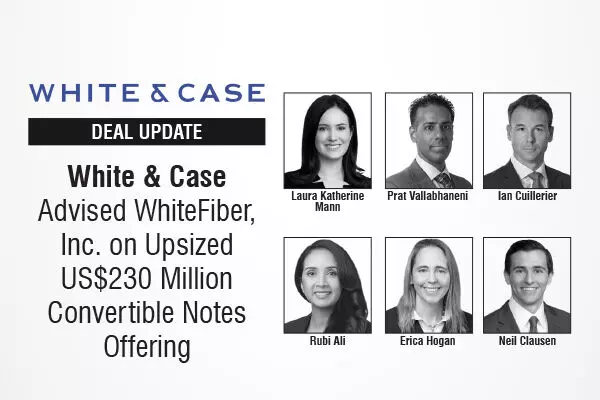 Global law firm White & Case LLP has advised WhiteFiber, Inc., a provider of artificial intelligence infrastructure and high-performance computing solutions, on its upsized private offering of US$230 million aggregate principal amount of 4.500% convertible senior notes due 2031.