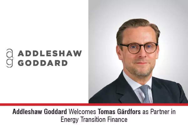 The major international law firm Addleshaw Goddard has announced the lateral hire of Tomas Gärdfors as a Partner in its Finance & Projects Division in London, further strengthening the firm’s capabilities in energy transition and critical infrastructure finance. Tomas joins the firm from Baker Botts, effective December 10, 2025.
