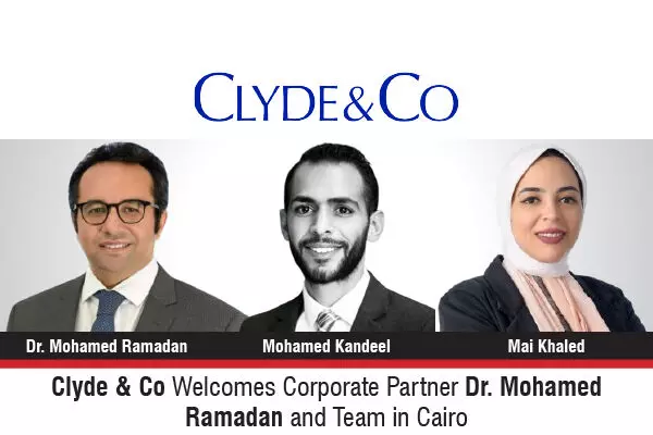 The global law firm, Clyde & Co has strengthened its corporate practice in Cairo with the appointment of Dr. Mohamed Ramadan as Partner, joining the firm along with his team, which includes Mohamed Kandel (Senior Associate) and Mai Khaled (Associate). The hire reflects the firm’s continued strategic investment in top-tier talent to expand its sector-led corporate and commercial offering in Egypt.