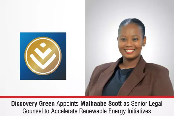 The Discovery Green platform, established in recent years by South African financial services organisation Discovery to position the country as a global leader in renewable energy, has strengthened its legal team by appointing talented lawyer Mathaabe Scott as Senior Legal Counsel.