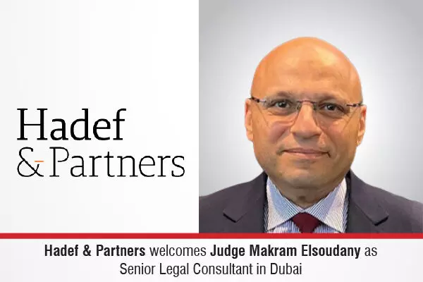 The leading UAE law firm, Hadef & Partners has announced the appointment of Judge Makram Elsoudany as Senior Legal Consultant in its Dispute Resolution department at the Dubai office.