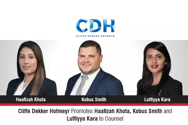The full-service law firm primarily focused on the African continent, Cliffe Dekker Hofmeyr Inc has announced the promotion of Haafizah Khota, Kobus Smith, and Lutfiyya Kara to Counsel, effective 1 April 2026, reinforcing the firm’s commitment to recognising internal talent and strengthening its practice capabilities.