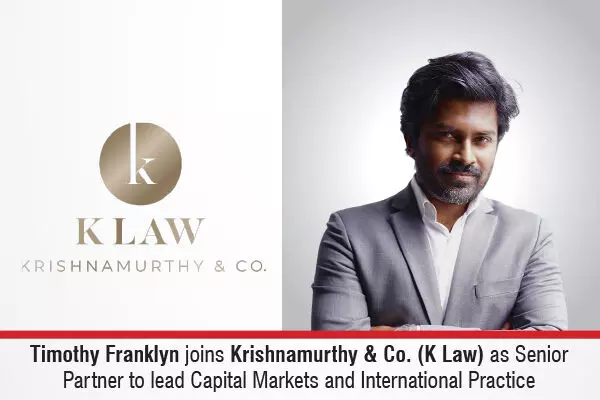 The premier full-service Indian law firm, Krishnamurthy & Co. (K Law) has announced the appointment of Timothy Franklyn as Senior Partner and Head of its Capital Markets and International Practice, effective February 2, 2026.