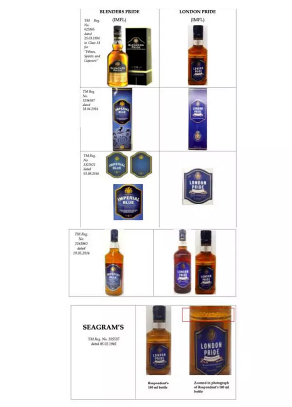 - Whether ‘London Pride’ infringes the registered trademarks/blends the goodwill of ‘Blenders Pride’ and ‘Imperial Blue’;