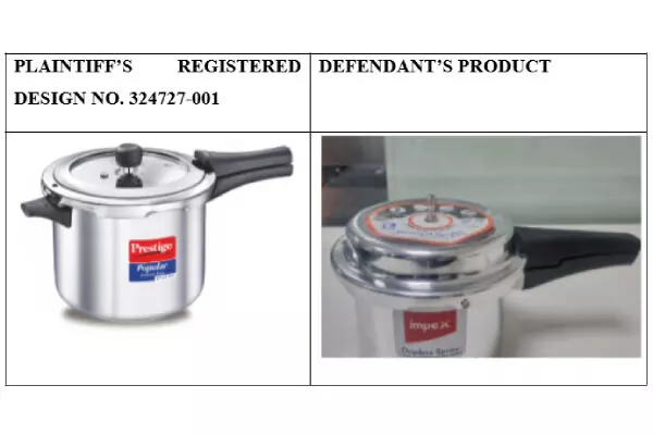 - The Plaintiff owned a registered pressure cooker design and sued the Defendant for selling similar cookers, alleging infringement and seeking injunction. The Plaintiff (TTK Prestige) registered a design for its “Svachh Deluxe Alpha” (Design no. 324727-001) pressure cooker lid, featuring a distinct circumferential depression and raised wall to control spillage and for aesthetic purposes. Plaintiff’s alleged that the Defendant’s (KCM Appliance) “Implex Delight Virgin Aluminum Dripless Pressure Cooker” copied this design and the Defendant disputed the claim and argue design differences and the same is attached below: