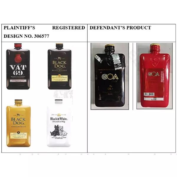- The court held that the Plaintiff, Diageo Brands, was the lawful proprietor of the registered design No. 306577 under the Act and it was stated that the creation of the design by an external agency (Love Creation) does not detract from the Plaintiff’s proprietary rights as the design was created by them, satisfying the requirements of Section 2 (j)8 of the Act. The court further emphasized that registration of a design does not constitute prima facie evidence of its validity. Unlike trademarks, design registration is subject to post-registration challenges and cancellation proceedings. Nevertheless, it was held that a validly registered design confers exclusive rights to the proprietor, entitling them to seek injunctive relief if a prima facie case of infringement is established. Consequently, the court granted an injunction in favour of the plaintiff, restraining the defendants from using the infringing bottles.