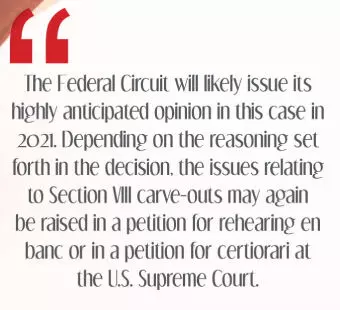 The Federal Circuit will likely issue its highly-anticipated opinion in this case in 2021. Depending on the reasoning set forth in the decision, the issues relating to Section viii carve-outs may again be raised in a petition for rehearing en banc or in a petition for certiorari at the U.S. Supreme Court. One thing is clear: both branded and generic drug companies have a vested interest in the outcome of GSK v. Teva.