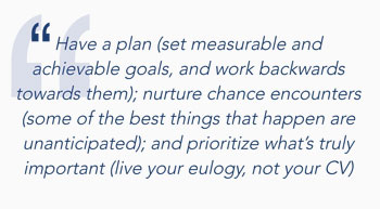 - Nurture chance encounters (some of the best things that happen are unanticipated); and