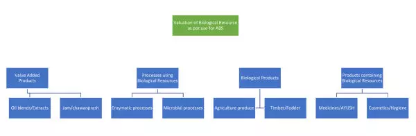 Valuation of Biological Resource for its various uses in the innovative products for which the commercial working statement is made by the patentee cannot be same for all inventions. The use of the bioresources in the final product may be very different (see Figure 1) including a value-added product to be the final commercial product (e.g. Jam). The contribution of a Biological Resource in a biotechnological process is completely different than that used in direct use products such as timber (e.g. Red sandalwood). The value chain analysis is essential for the herbal medicine industry, and the use of minor amounts of bioresources in otherwise chemical products (e.g. shampoo with natural fragrance). The process of chromatography of a bioresource to evaluate the chemical profile or the use of pests for testing of chemical pesticides are completely different uses of bioresources and imposition of any ABS for such use would need to be evaluated using an entirely distinct approach.