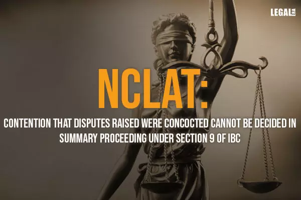 According to the National Company Law Appellate Tribunal (NCLAT), contention that disputes raised were concocted cannot be decided in summary proceeding under Section 9 of IBC