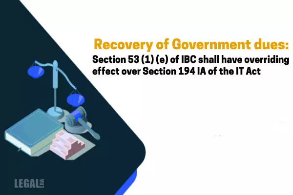 Recovery of Government dues: Section 53 (1) (e) of IBC shall have overriding effect over Section 194 IA of the IT Act