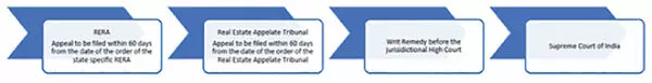 Prior to the enactment of the Real Estate (Regulation and Development) Act, 2016, (RERA Act), the RE sector (particularly the JD projects) were largely unorganised and lackeda specific regulatory authority to look into the disputes arising out of the RE sector. In other words, consumers of the RE sector were forced to approach the consumer redressal forums and / oralternatively seek legal remedy available before the jurisdictional civil courts resulting in delays. While state government drivenlegislations, for instance ‘The Karnataka Ownership Flats Act, 1972’ in the State of Karnataka did make an attempt to regulate the RE sector, but the very fact that it lacked a specific authority for speedy redressal of disputes did not assist the end consumers to derive the optimal benefit to safeguard their rights. With the introduction of the RERA Act, the Union Government of India has addressed this specific concern by empowering the states to constitute state specific authorities guided by the RERA Act and state specific RERA rules. The following snapshot demonstrates the hierarchy and timelines: