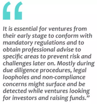 Spending on professional service providers, regulatory and compliance requirements and registration fees can be burdensome for start-ups in the beginning and drain crucial resources needed for other areas of the business to boost growth. However, it is essential for ventures from their early stage to conform with mandatory regulations and to obtain professional advise to specific areas to prevent risk and challenges later on. Mostly during due diligence procedures, legal loopholes and non-compliance concerns might surface and be detected while ventures looking for investors and raising funds. Such discovered "red flags" might often lead investors and strategic partners to pull out of transactions and shy away from investments. This can be prevented by prudent management of certain risk factors and key aspects.