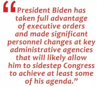 As many predicted, President Biden's promises of broad changes to America's labor and employment law has hit some roadblocks due to the partisan gridlock in the Senate. However, as noted, President Biden has taken full advantage of executive orders and made significant personnel changes at key administrative agencies that will likely allow him to sidestep Congress to achieve at least some of his agenda.